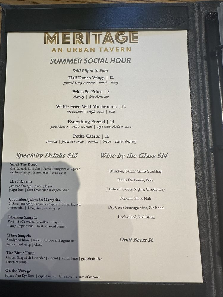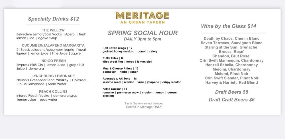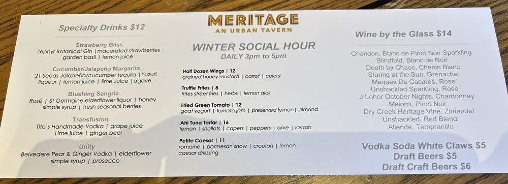 With its inviting outdoor seating, attentive service, and vibrant setting, MERITAGE offers a culinary experience that beautifully marries elegant dining and the lively energy of a tavern. Whether you are here for a casual lunch or a festive evening out, this urban tavern is sure to impress.